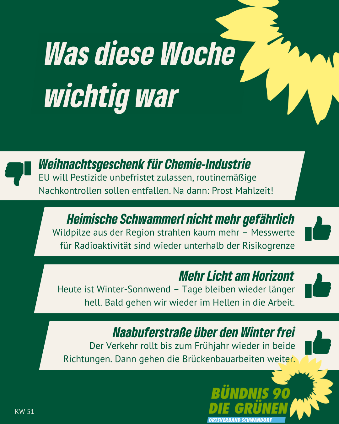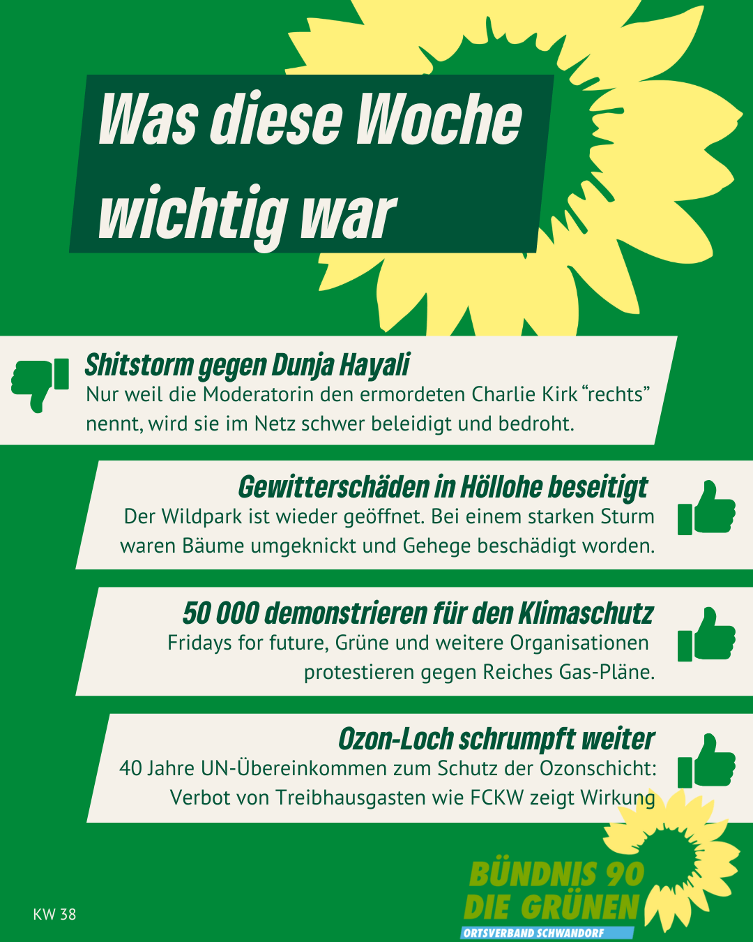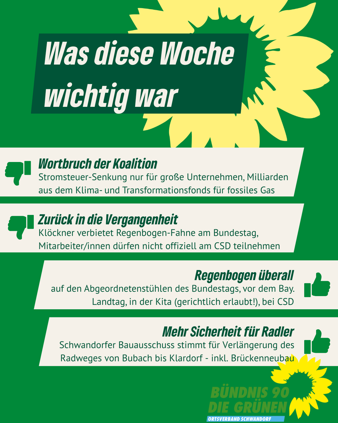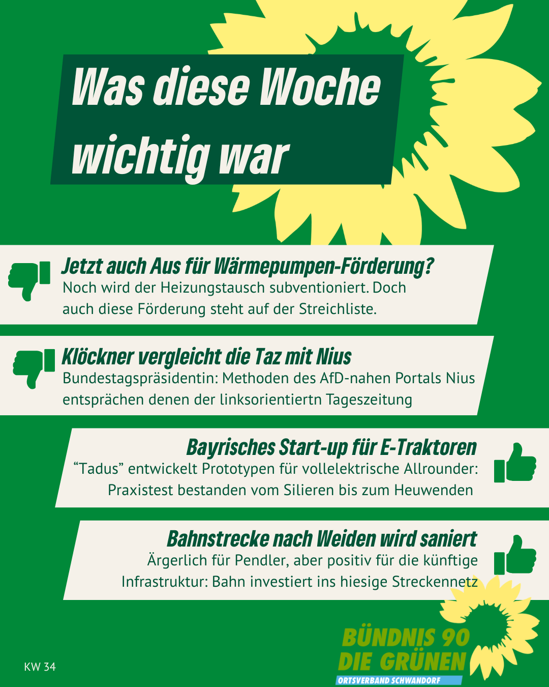 Alle Links auf unserer Homepage, die auf externe Websites leiten, sind mit ↗ gekennzeichnet. Von den Inhalten verlinkter externer Websites distanzieren wir uns ausdrücklich. Diese stehen in keinem Zusammenhang mit unserer Homepage gruene-schwandorf.de.