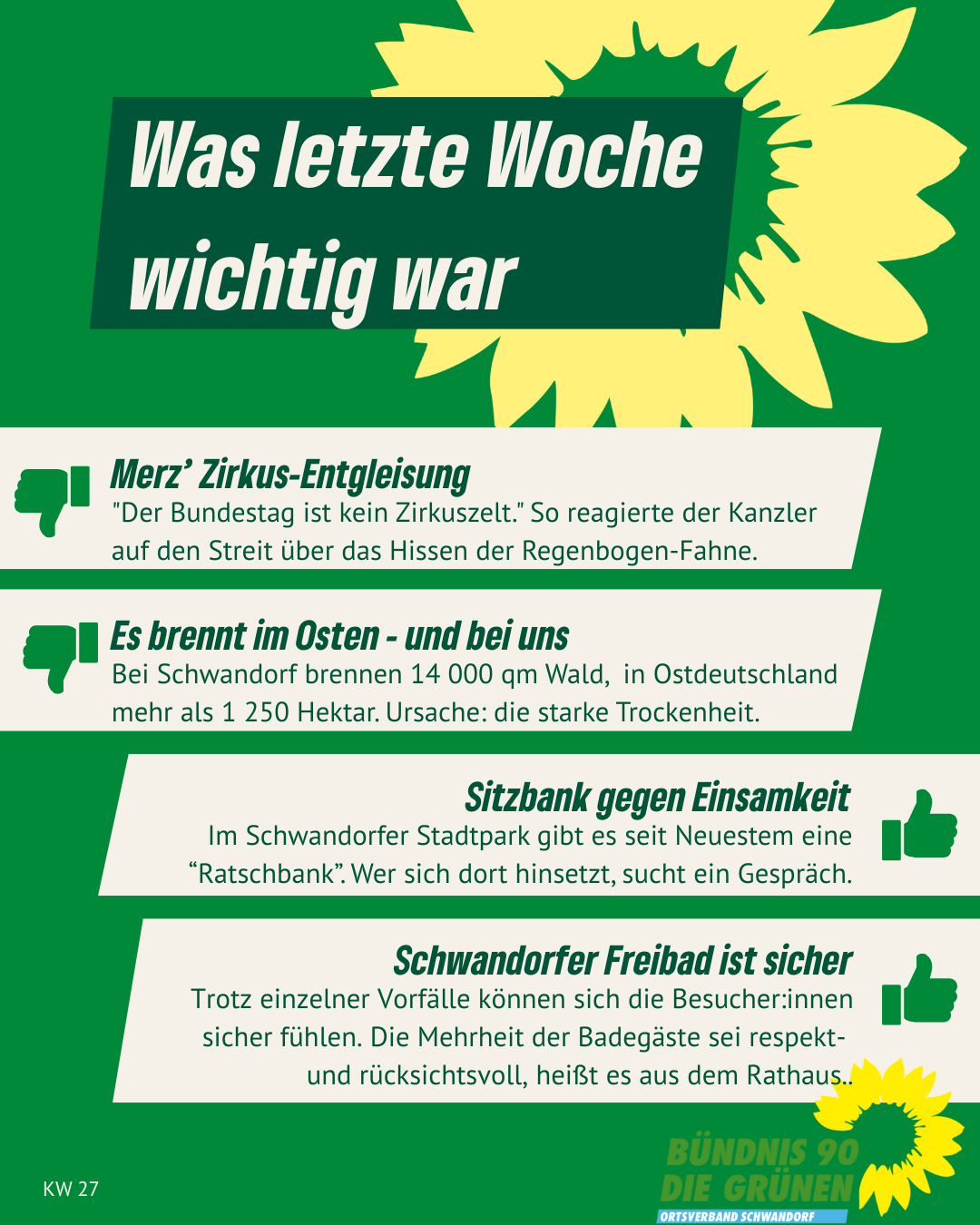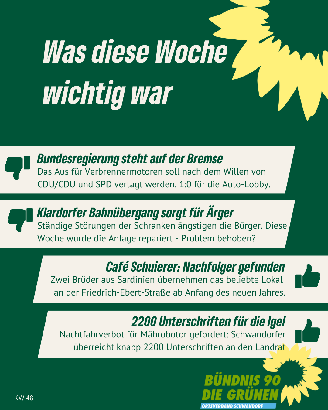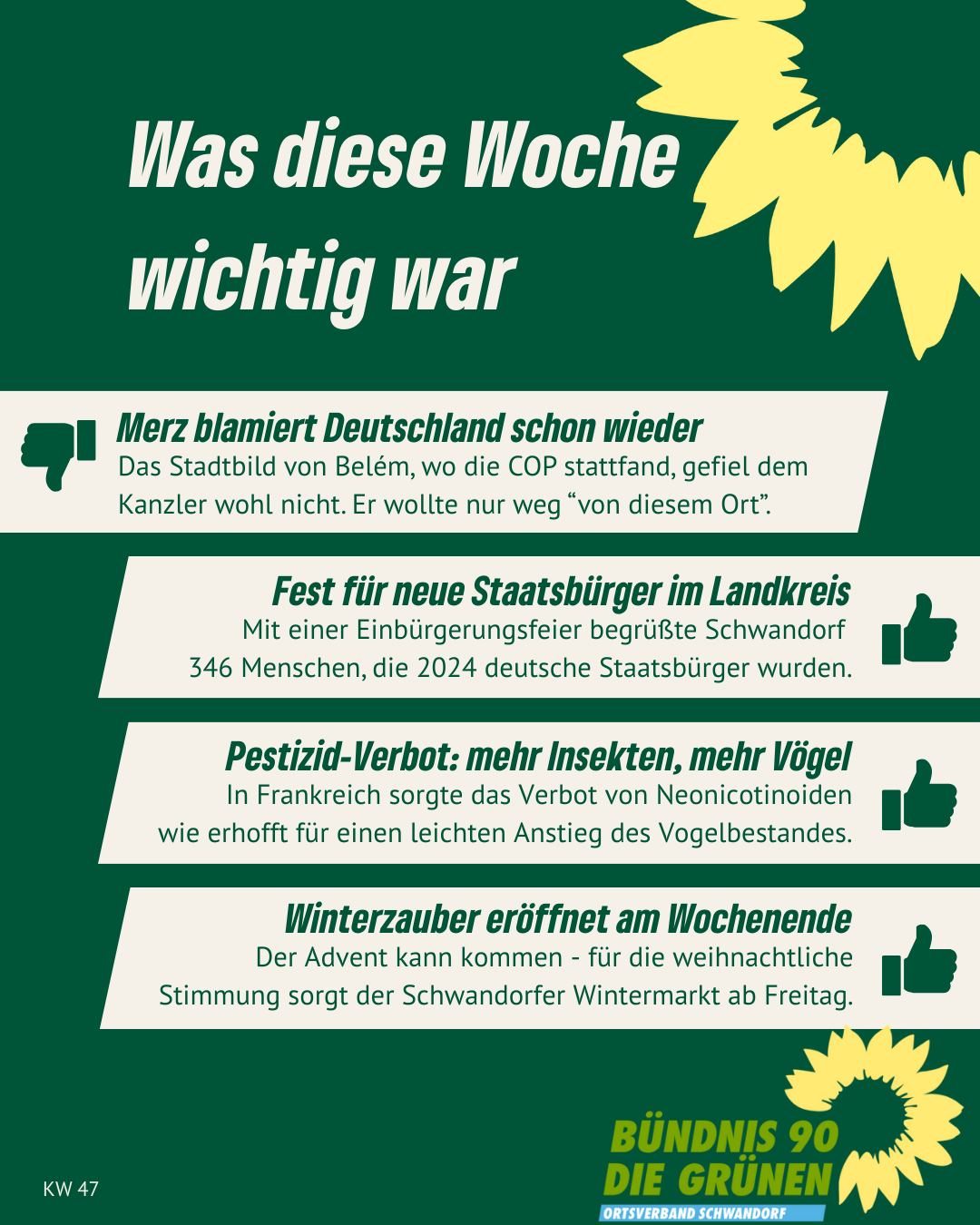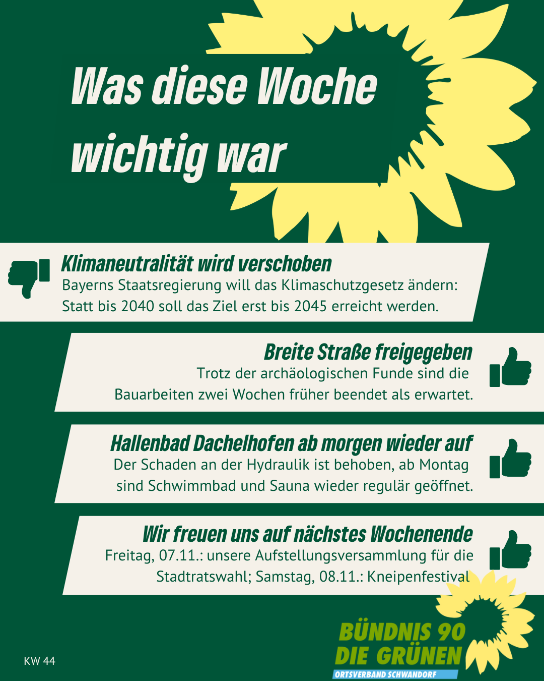 Alle Links auf unserer Homepage, die auf externe Websites leiten, sind mit ↗ gekennzeichnet. Von den Inhalten verlinkter externer Websites distanzieren wir uns ausdrücklich. Diese stehen in keinem Zusammenhang mit unserer Homepage gruene-schwandorf.de.
